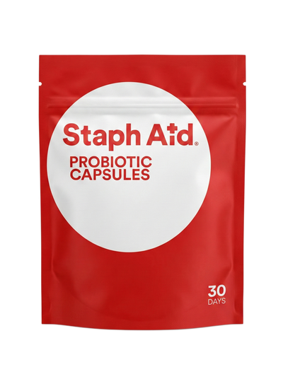 Staph Aid contains powerful probiotics and vitamins in a proprietary formula. Bacillus Subtilus, Bacillus Coagulans, and Vitamin C.